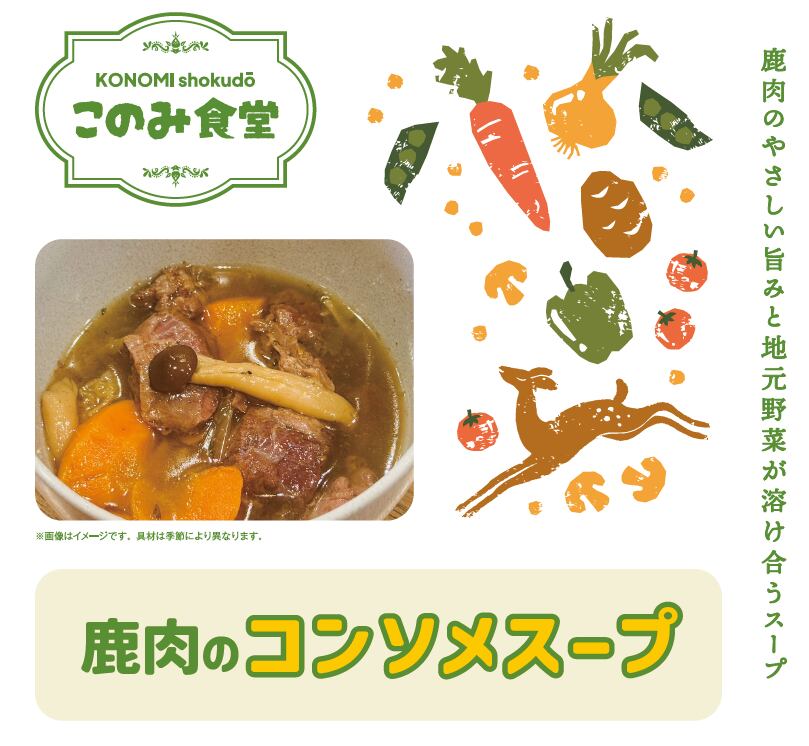 鹿肉のやさしい旨味と地元野菜が溶け合うスープ