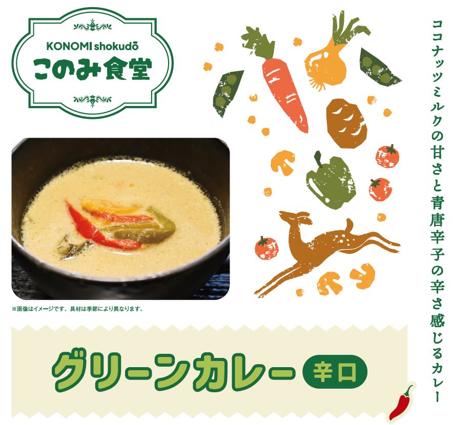 ココナッツミルクの甘さと青唐辛子の辛さ感じるカレー